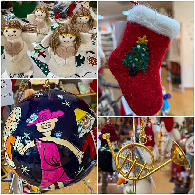 In unserem Weltladen findest du liebevoll gestalteten Weihnachtsschmuck aus aller Welt: aus Naturmaterialien, recyceltem Glas oder kunstvoll bemaltem Metall.